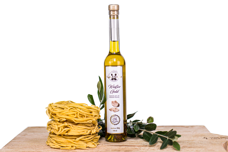 Ein unverwechselbarer Duft und ein milder Geschmack zeichnen dieses besondere Öl aus. Getrockneter weißer Trüffel wird durch natürliches Trüffelaroma ergänzt. So bekommt das italienische Olivenöl (Extra Vergine) einen sanften Geschmack, der besonders in der leichten Mittelmeerküche geschätzt wird.